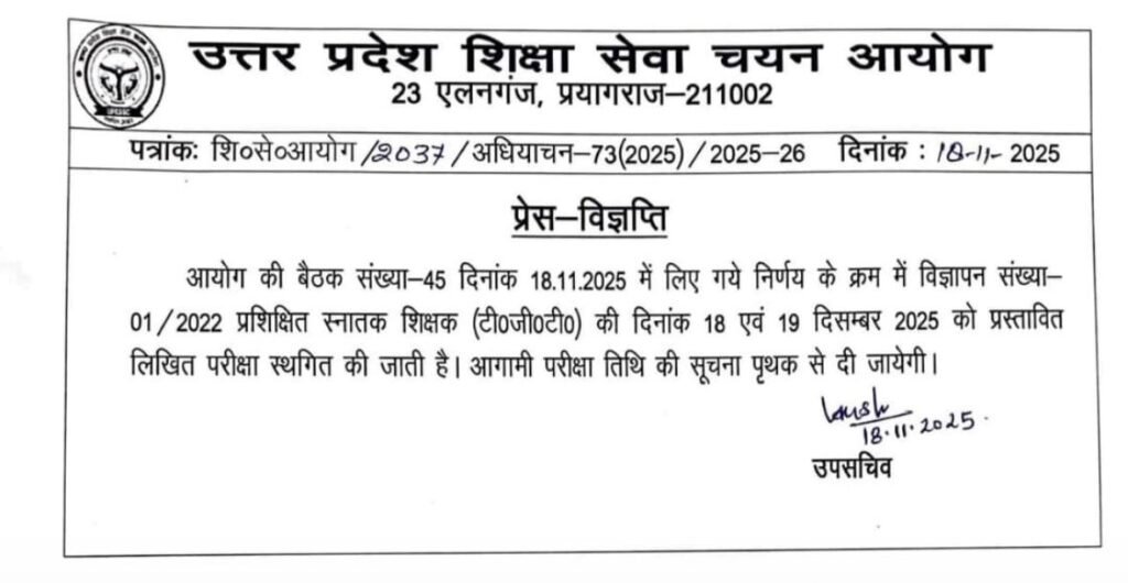 प्रयागराज18/11/25*यूपी शिक्षा सेवा चयन आयोग से जुड़ी खबर*