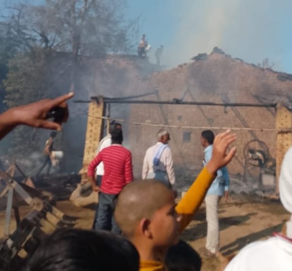 कौशाम्बी 16 फ़रवरी 26*दो किसानों के घर में अचानक लगी आग ट्रैक्टर सहित तीन भैंस झुलसी*