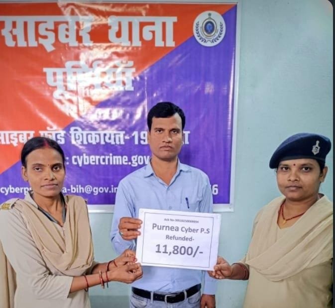 पूर्णिया बिहार 23 फरवरी 26*साइबर थाना ने पीड़ित को दिलाए 11,800 रुपये वापस