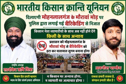 लखनऊ28अप्रैल26*मोहनलालगंज के मौरावां मोड़ पर पुलिस द्वारा लगाई गई बैरिकेडिंग को लेकर अब विरोध तेज हो गया है।