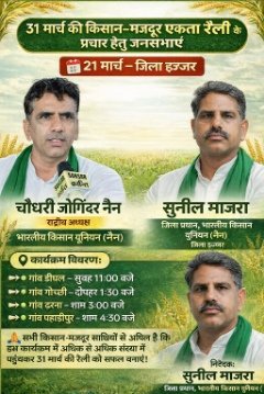 जींद हरियाणा 19 मार्च 26*भाकियू द्वारा जनसंपर्क अभियान तेज 31 मार्च को होगी जींद में किसान व मजदूरों की बड़ी रैली।
