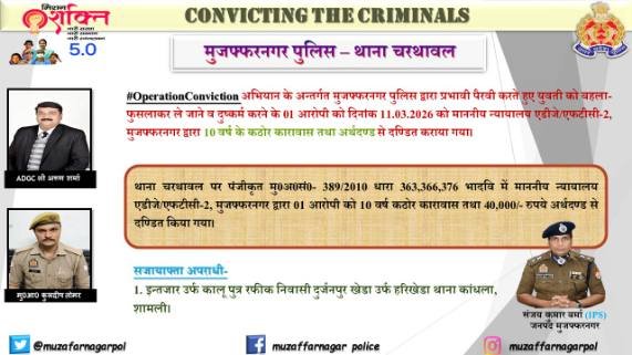 मुजफ्फरनगर 11 मार्च 26*युवती को बहला-फुसलाकर दुष्कर्म करने वाला आरोपी 10 साल की सजा से दंडित*