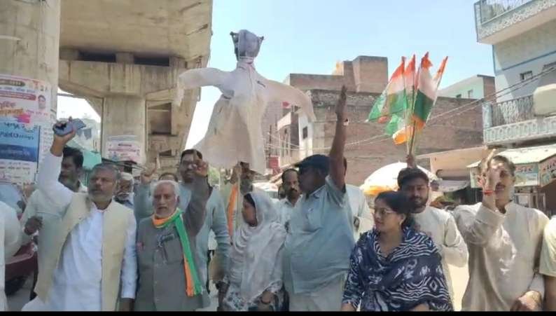 बांदा10अप्रैल 26 में कांग्रेसियों ने असम मुख्यमंत्री हेमंत बिस्वा शर्मा का पुतला फूंका*